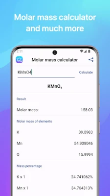 🧪 The Chemistry application allows you to find chemical reactions and to solve the chemical equations with one or multiple unknown variables. You'll always have the Periodic Table of elements and Solubility table handy! And even the calculator of Molar Masses is now on your phone!