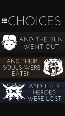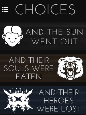 "What’s really innovative about Choices...unlike traditional gamebooks that have a definite end, Choices: And the Sun Went Out is a continuing gamebook...allowing you to progress through the story over time. As you make choices in your story, it will advance in ways completely differently than other readers..." - PocketTactics.com