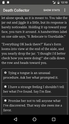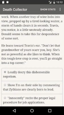 "Death Collector" is a 300,000 word interactive fantasy novel by Jordan Reyne, where your choices control the story. It's entirely text-based—without graphics or sound effects—and fueled by the vast, unstoppable power of your imagination.