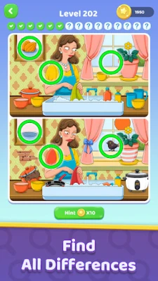 Find Differences is a classic relaxing game around the world. It is a type of puzzle where players must find a set number of differences between two otherwise similar images, whether they are illustrations or photographs that have been altered with photo manipulation. Spot the difference games are also known as photo hunt games and were commonly found in activity books or newspapers before the E era. But now! Our game app enables you to easily play tons of Find the Difference games on any mobile device anywhere & anytime.