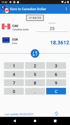 Application to convert amounts in Euro and Canadian Dollar / EUR and CAD and see the chart of historical exchange rates.
