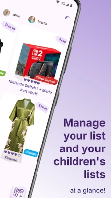 Manage your children's gift lists yourself from your account!