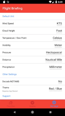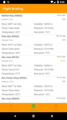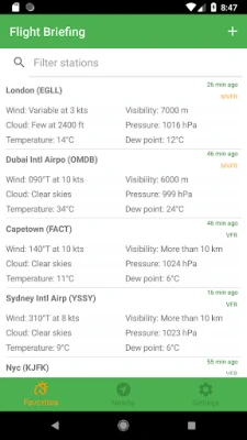 Flight Briefing is a mobile application that allows pilots to retrieve METAR, TAF and NOTAM data for stations worldwide. Favorite stations can be saved, and the application will also decode all data so that it is easier to read. It is also possible to view reports from nearby stations using the location functionality of your device. All features can easily be accessed from a simple and intuitive navigation system.