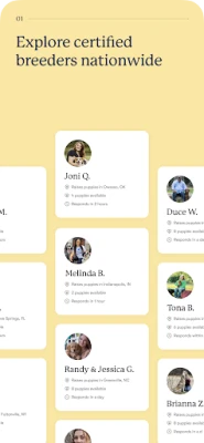 The Good Dog app connects you directly with certified breeders across all 50 states. Search confidently for your pet, knowing every breeder is screened for responsible practices.
