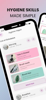 Hygiene Hippie is a playful, research-informed app designed to help individuals build independence in hygiene and daily routines. By combining a visual schedule with powerful video modeling, users are empowered to complete everyday tasks with confidence and consistency.