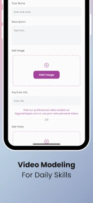 Each task step can include a video—either from your own camera roll or our curated library of professional hygiene demonstrations. Watching someone complete the task increases familiarity and confidence.
