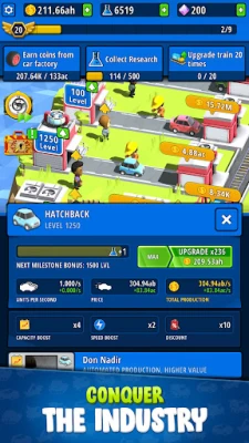 In Idle Inventor, you're the mastermind behind the factory tycoon in charge of building powerful machines - from simple cars to futuristic spacecraft. It’s one of the most satisfying idle games for fans of simulation, clicker and money-making games.