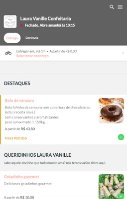 Peça Delivery para Laura Vanille Confeitaria com poucos toques na tela do seu Android