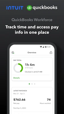 QuickBooks Workforce—an app for QuickBooks Payroll and QuickBooks Time (formerly TSheets)—lets teams view pay info and track time in one place.