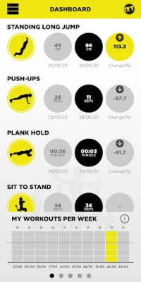 - View the dashboard display to see your past and current fitness levels and weekly progress towards your muscle-strengthening exercise goals
