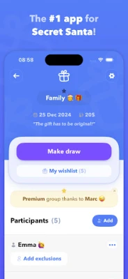 The best secret santa generator app has arrived. You can now organize the gift exchange with your friends really easy and free. It's the best way to draw the names on christmas